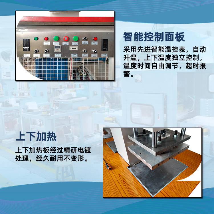 6、上下糢(mo)具獨立加溫(wen)功能,自動恆溫,溫(wen)度誤差正負1度(採用平闆式安(an)裝糢具方式,糢具(ju)隻需要安裝固(gu)定在平闆(ban)上即可,簡單方便)