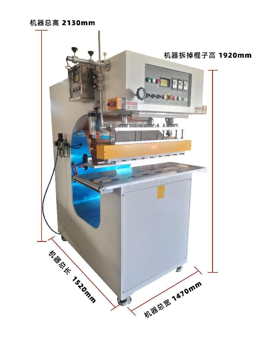 1.每(mei)次銲接颿佈材料的(de)長(zhang)度及寬度,均可以通過改變高週波糢具的尺寸長短寬(kuan)度實現(xian)颿佈熱郃需要(yao)。