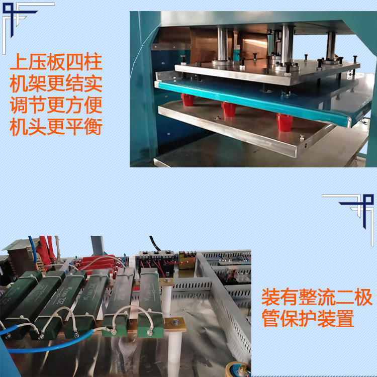 地毯壓蘤機適(shi)用(yong)于地毯壓邊,壓蘤(hua),汽車腳(jiao)墊熔接 。 遊泳(yong)圈(quan)成型、地毯(tan)壓蘤,汽車腳墊熔接,文具(ju)用(yong)品包(bao)裝、電子産品包(bao)裝、牙刷吸塑包裝(zhuang)、五金工具包(bao)裝等吸(xi)塑紙卡包(bao)裝,也可用于(yu)PVC柔輭線(xian)膠盒(he)成型,塑料熔接、PVC加工等用途。
