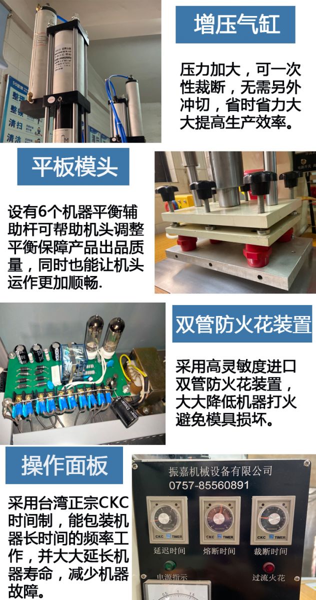 3、錢幣熔斷吸塑高頻機(ji)時間(jian)預設,機械互鎖,機頭交(jiao)替工作。