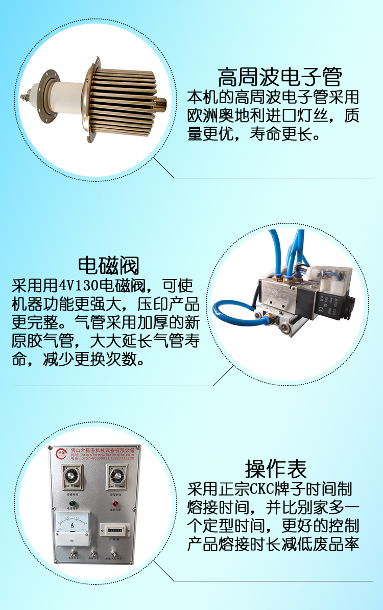 雙(shuang)頭腳踏高週波機(ji)由振(zhen)嘉機(ji)械二十(shi)年行業經驗專(zhuan)業生産,更多了解請咨詢:15019699143 娜小姐