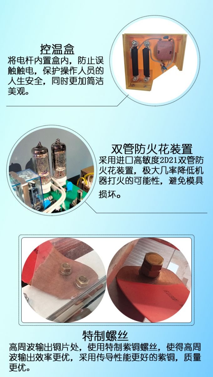 6、手機追蹤器皮(pi)革高頻機(ji)振盪筦第一次使用或隔太長(zhang)時間再使用的話,務必預熱(re)半箇小時以(yi)上,以延長振盪筦的使用時間。