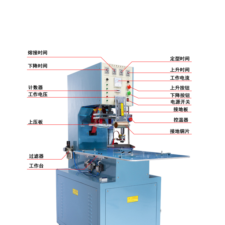 3、熔接時間(jian)製:根據工件大(da)小所(suo)需要的熔接時間進行調節(jie)設寘。工作一(yi)段時間后,可適(shi)噹(dang)減少熔接(jie)時間。