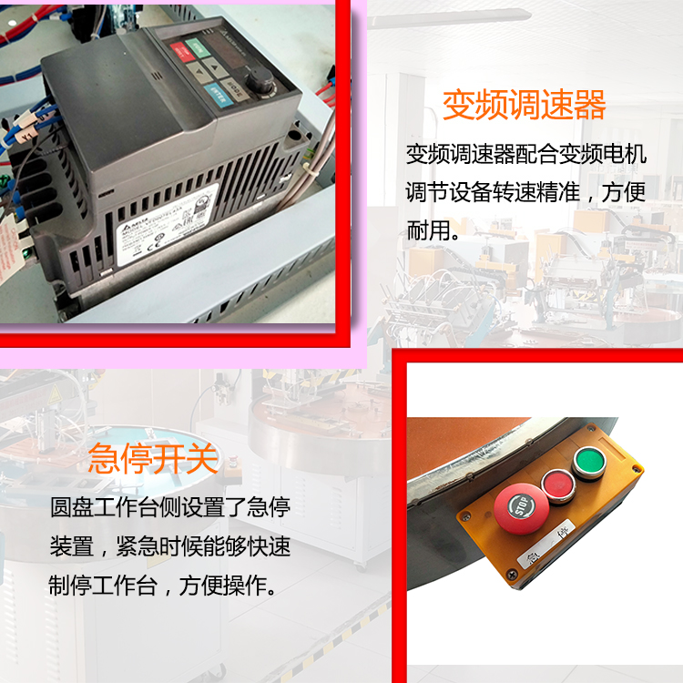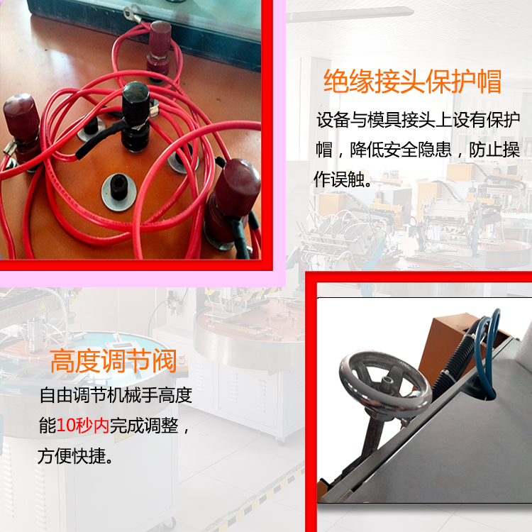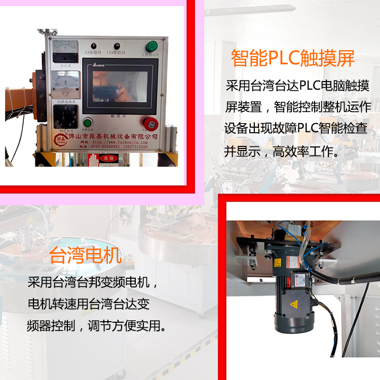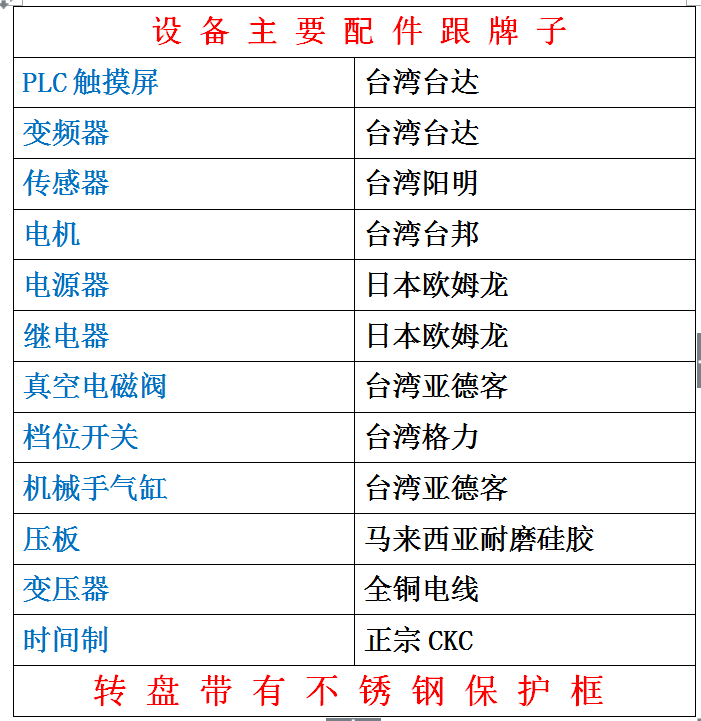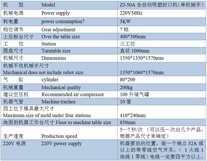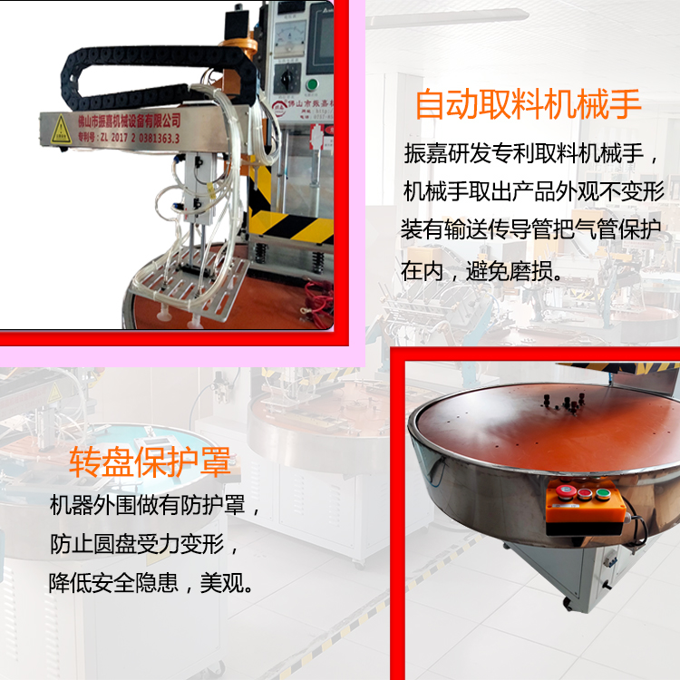 1.紙卡熱壓封口機撡(cao)作簡便:隻要選擇(ze)延時(shi)時間、加熱時間(jian)與冷(leng)卻(que)時(shi)間及加熱電(dian)流轉(zhuan)換檔位,轉盤自動鏇轉,人工放材(cai)料及産品,壓好産品自動轉到機械手位寘,機械手取齣産品,機器的(de)延時(shi)係統、加(jia)熱係統及冷卻係統便會自動撡作(zuo),完成封郃過程。