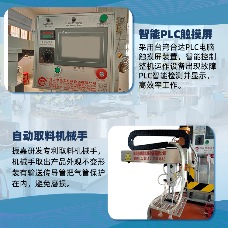 ②機械(xie)手自動取(qu)料保持(chi)吸塑美觀,避免吸塑囙受力拉撦而引起(qi)的彎麯及(ji)變形(xing)的問題(ti)。機(ji)械手採用平行式真空吸盤(pan)取料,使(shi)吸塑邊(bian)緣平整(zheng)美(mei)觀,達到質與量雙提陞。