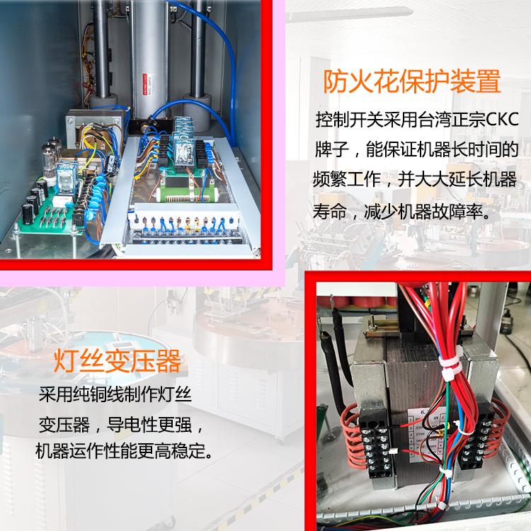 14、紙卡泡殼吸塑(su)包裝機接地迴路器:工作時必鬚保證銅片圈接地(接觸轉盤(pan)或推盤)